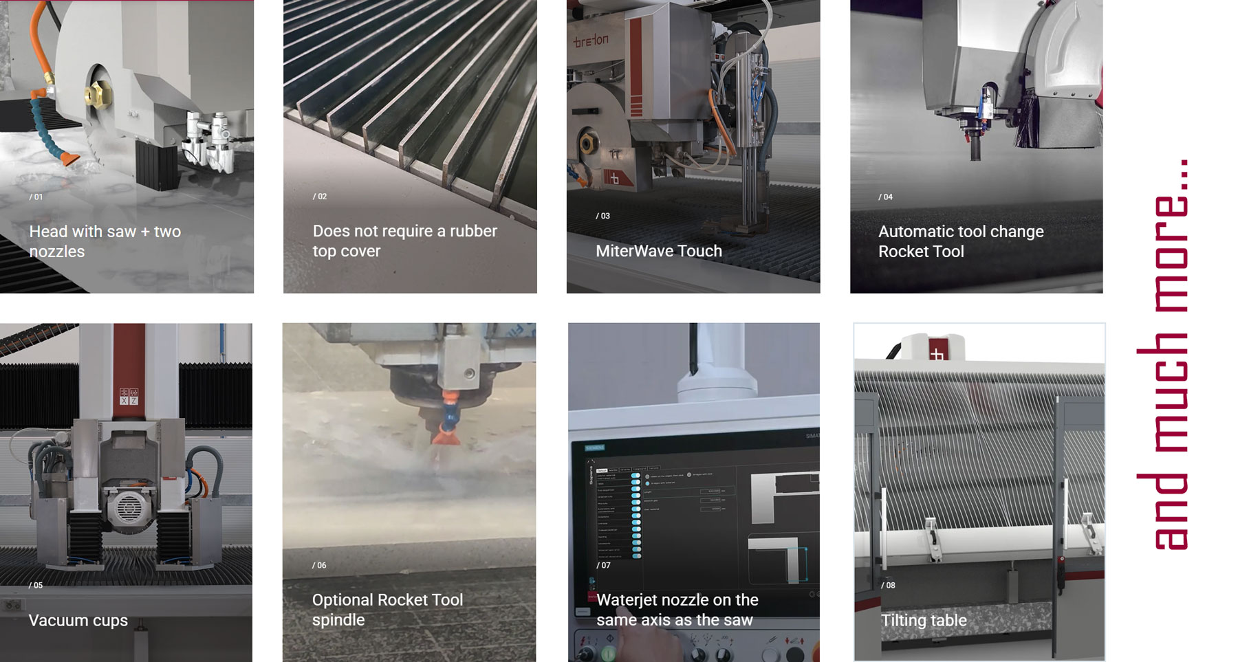 Breton invents, designs and builds specific high tech and high production machining centres, lines and stand-alone machines for processing materials (natural stone, marble, granite, quartz, ceramic, heavy clay, mineral surface, resins and foams, polymers, and metals) and for additive manufacturing.